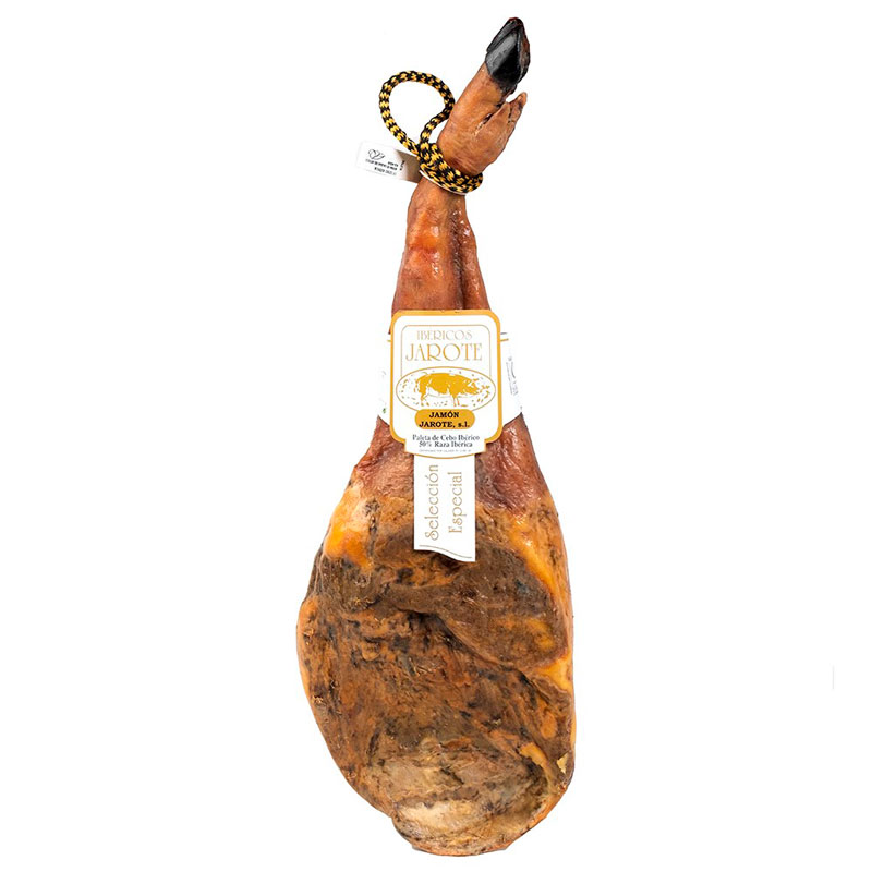 La Paleta de Cebo 50% Ibérica Jarote es un producto tradicional de gran calidad, elaborado a partir de cerdos con un 50% de raza ibérica, criados en régimen de cebo y alimentados con una dieta controlada de piensos seleccionados. Esta combinación garantiza una paleta equilibrada, sabrosa y accesible, sin renunciar al carácter del ibérico.