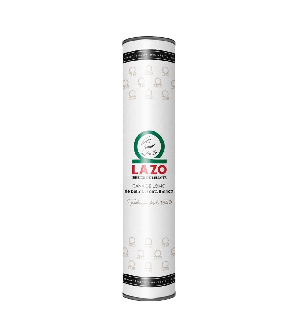 ¡Embutidos ibéricos a un clic! Caña de lomo de bellota 100% ibérica LAZO, proveniente de cerdos 100% ibéricos alimentados naturalmente con bellotas en la época de la montanera. Por ello esta caña de lomo es llamada como de bellota.